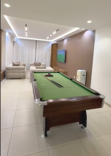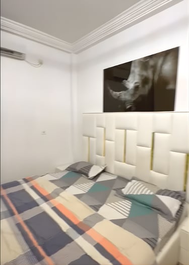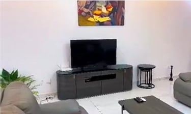 Cité ataya. Composé de 3 chambres salon, table billard. Chaque chambre est équipée de salle de bain et une télévision. L’appartement est doté d’un réseau wifi, chauffe-eau et tous accessoires domestiques.